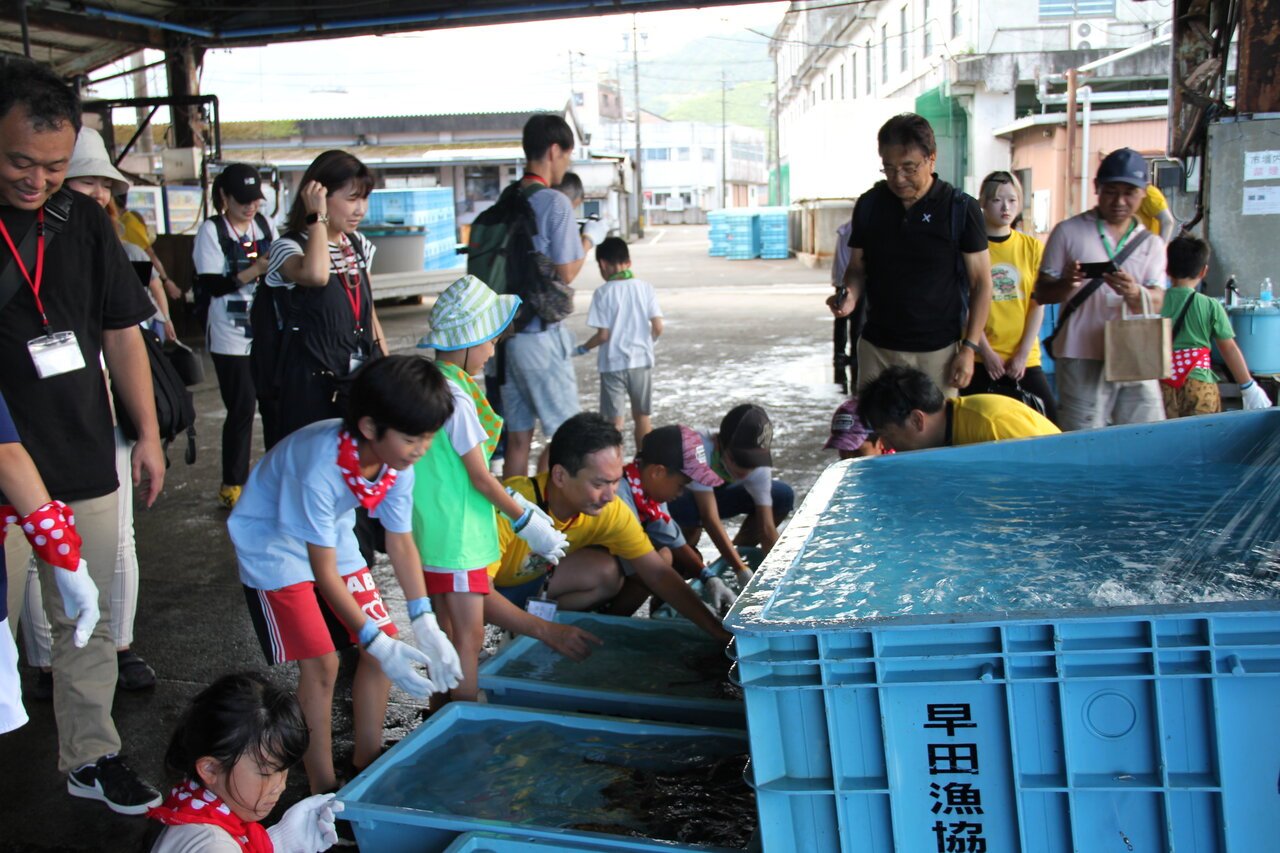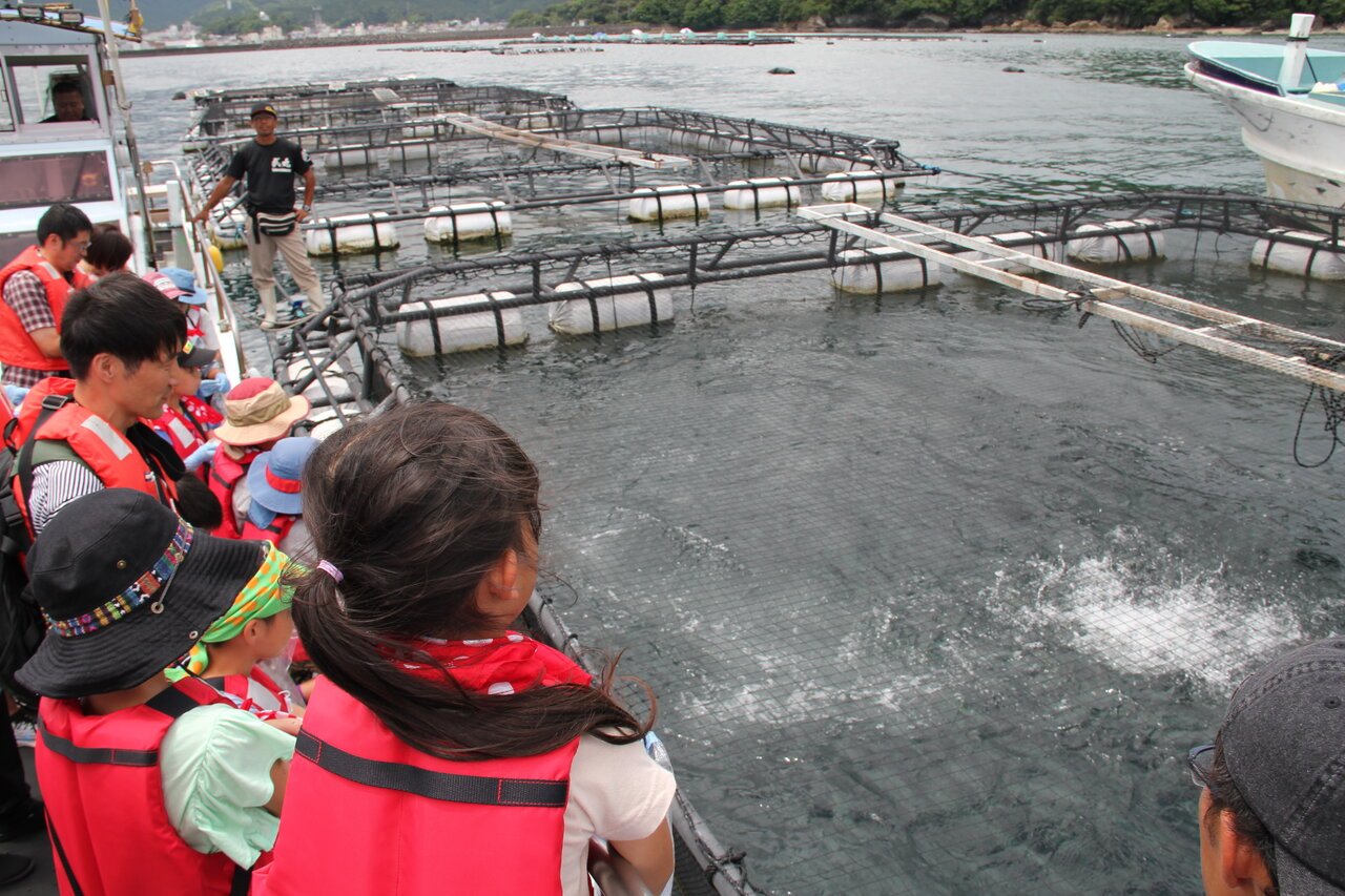 二つ目は「スシローと一緒に海を体験するツアー」。本イベントは2018年から実施しており、7月26日にパートナー企業である尾鷲物産株式会社(本社:三重県尾鷲市、代表取締役社長:小野博行)の本社で開催しました。船に乗って養殖場を見学し、実際に餌やりも行うなど魚に直接触れる体験を通じ、子どもたちに「命」をいただくことへの感謝や水産資源の大切さを感じていただきました。