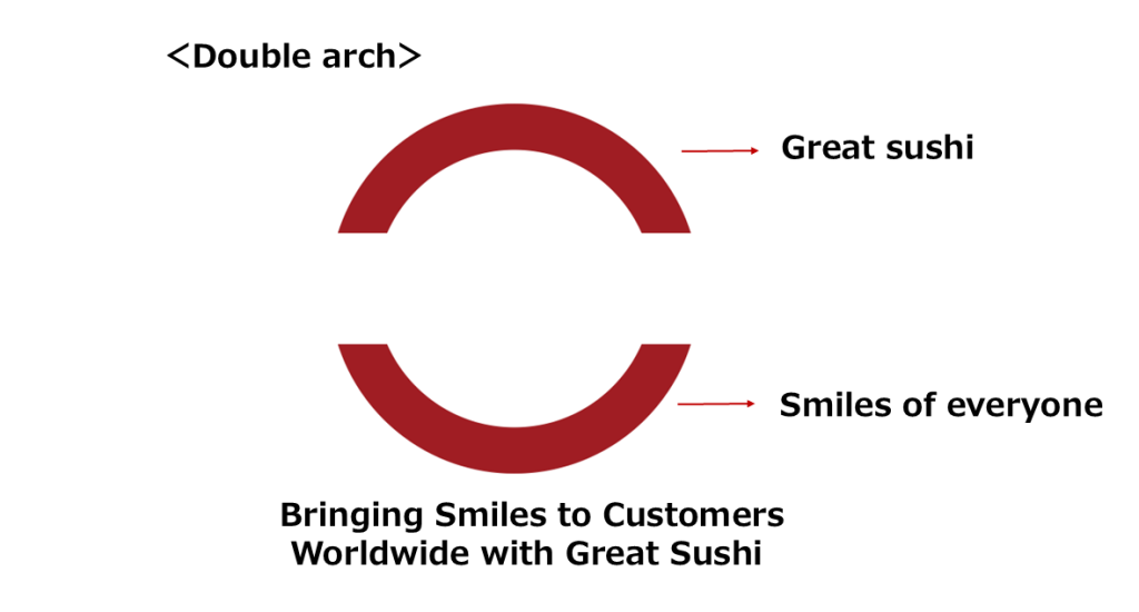 While inheriting the design that has been loved by many customers over the years, we have redefined the upper and lower red lines as a double arch, embodying our aspiration to bring smiles to customers worldwide with Great Sushi.