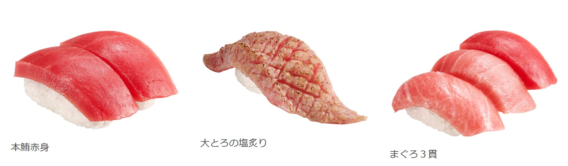 3rd place: 3 pieces of tuna (590 yen including tax): Made with farmed tuna. A highly satisfying dish that allows you to enjoy lean, medium-fatty, and fatty tuna all on one plate.