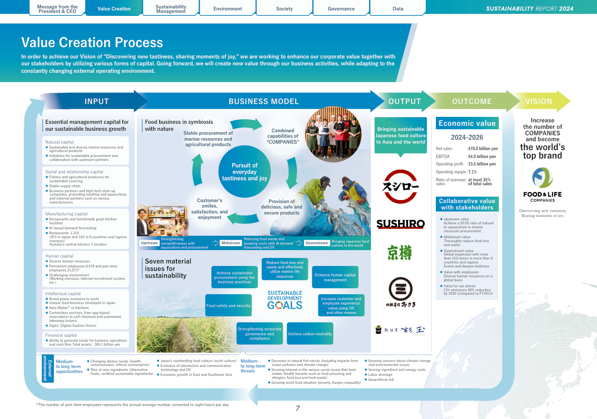 In order to realize our VISION, “Let’s change the taste of everyday life. Let’s spread joy to the world,” we will utilize various capital and work together with our stakeholders.