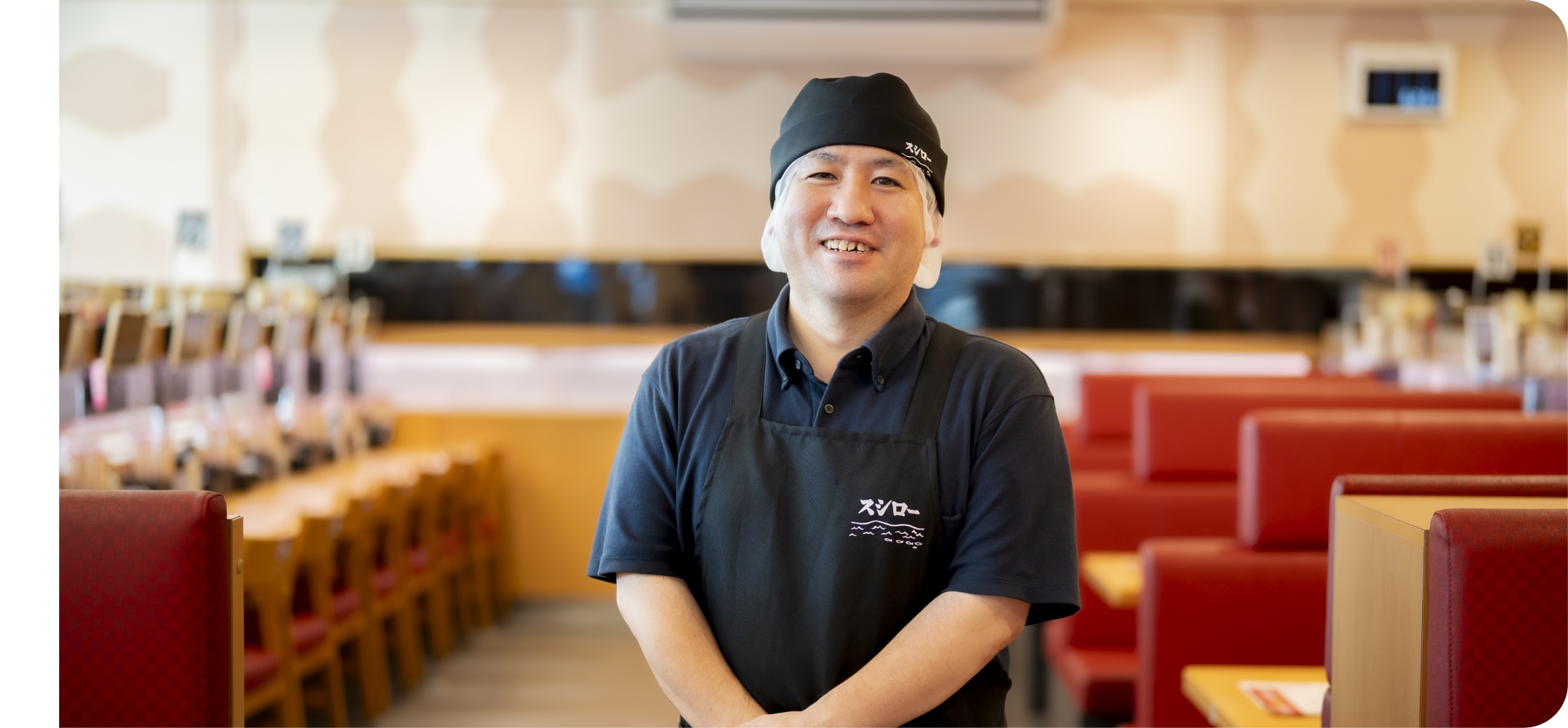 受験を終えて大学入学と同時にスシローでアルバイトとして週3〜4日の頻度で学業とはバランスをとりながら働いてきました。そして就職活動のタイミングで当時お世話になっていた社員の方に誘ってもらい、2009年に新卒社員として入社しました。入社後は中部地区を中心に主に店長として店舗の運営に携わってきました。私の場合は比較的転勤が多く、半年に一度くらいのスパンで異動を繰り返してきました。その間2回の新規店舗の立ち上げを経験し、大きなやりがいも感じていました。新店舗立ち上げは、最新の設備を導入するなどチャレンジングなことが多かったので特に印象に残っています。