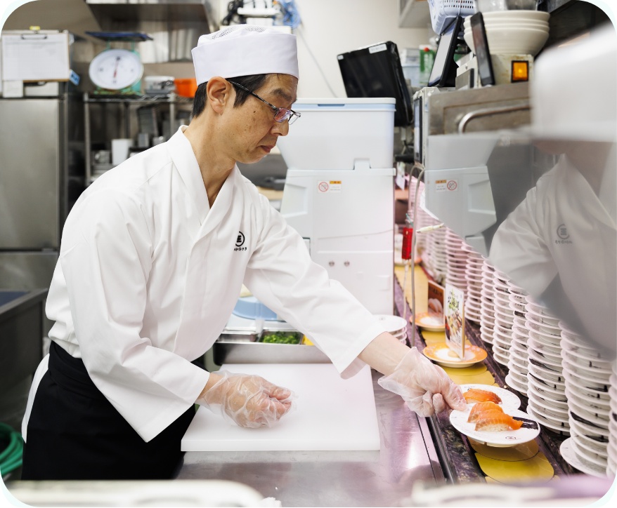 家庭の事情で、夜遅い時間まで社員として働くことが難しくなった時に別の回転寿司チェーンに声をかけてもらい、契約社員として転職を経験しました。時間の都合はつきやすい働き方になりましたが、その職場はさまざまな体制づくりや効率化の仕組みが整っておらず、仕込みなど大変苦労しました。様々なお店を経験する中、最初に入社した京樽がお店の運営においても福利厚生などについてもしっかりしていたことを改めて実感しました。現在は京樽の経営する回転寿司みさきで、アルバイト・パートとして働いています。仕事は店長代理としてさまざまな業務を任せてもらっています。世代間のギャップなど若い世代とはコミュニケーションの取り方などで苦労する部分はありますが、時代のニーズにあわせて丁寧に接するように心がけています。
