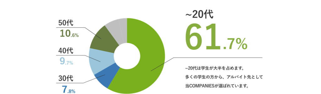 最も多く働いているのは学生アルバイトです