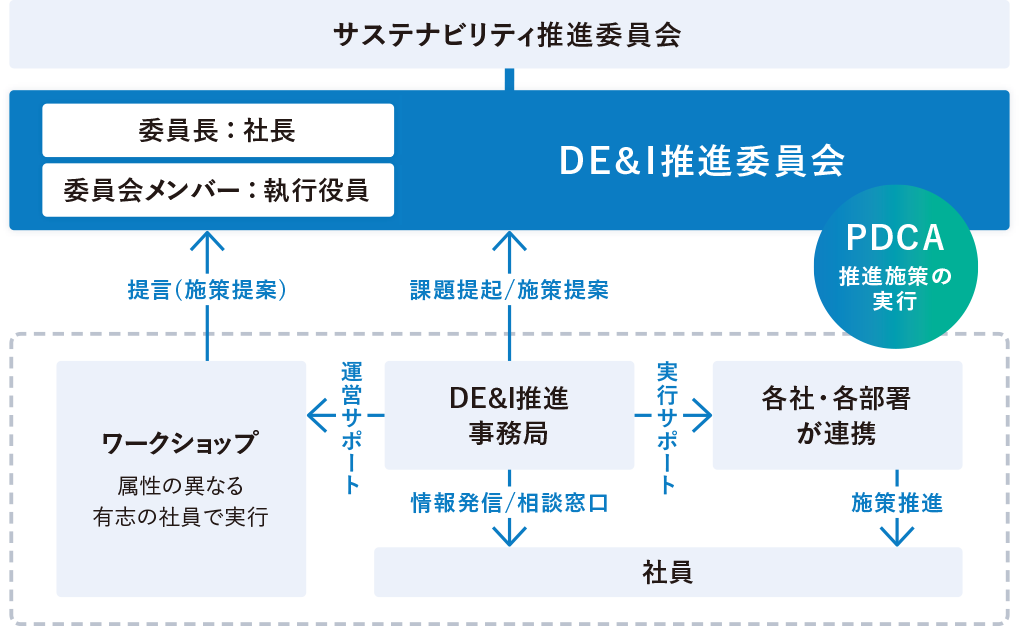 当社グループと社会のさらなる持続的な発展を目指し設置された、サステナビリティ推進委員会の活動の一環として、DE&Iを推進しています。